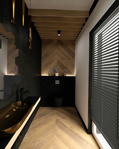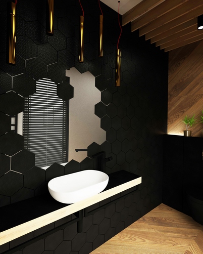 Czarny kolor ma negatywne stereotypy: uciska, zjada światło i przestrzeń, a czarne meble wyglądają nieporęcznie. Jednak przy prawidłowym użyciu czarny jest neutralnym kolorem. W połączeniu z białym i np. miedzianymi dodatkami stanowi kolor bazowy. Czarny kolor w wystroju wnętrz wygląda bardzo gęsto, stwarza wyjątkową głębię i przy odpowiednim zastosowaniu nie musi tworzyć wnętrz żałobnych, ale eleganckie, lakoniczne i wysmakowane wnętrze.