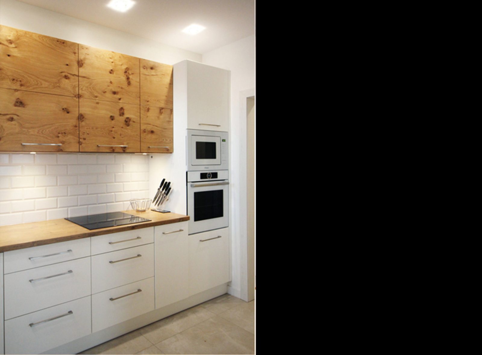 Apartament powstał z przebudowy domu jednorodzinnego. Dosyć ciekawy układ funkcjonalny pozwolił nam na przestrzeń, którą można obejść dookoła. W tym układzie znalazło się miejsce nawet na dwie łazienki.